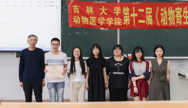 经过认真筛选,本次共有8组参赛作品进入到决赛当中,按照赛前的抽签顺序,各小组分别进行了制作感言、FLASH展示、评委提问三个环节。同学们的FLASH作品都各具特色,科学严谨而不失创新,不但将各自作品从寄生虫病原形态、生活史特点、感染过程、引起的病理变化、症状到防治措施等都介绍完全,还大胆创新,采用不同的思路让作品每一部分都衔接自如,融会贯通,赢得了在场评委专家的好评。在作品展示完后,专家们都对每一个作品进行认真点评提问,使作品得到更好塑造。比赛结果最终产生了三等奖5组、二等奖2组、一等奖1组,分别由王新平教授、丁壮教授、王哲教授分别为三、二、一获奖选手颁奖并合影留念。