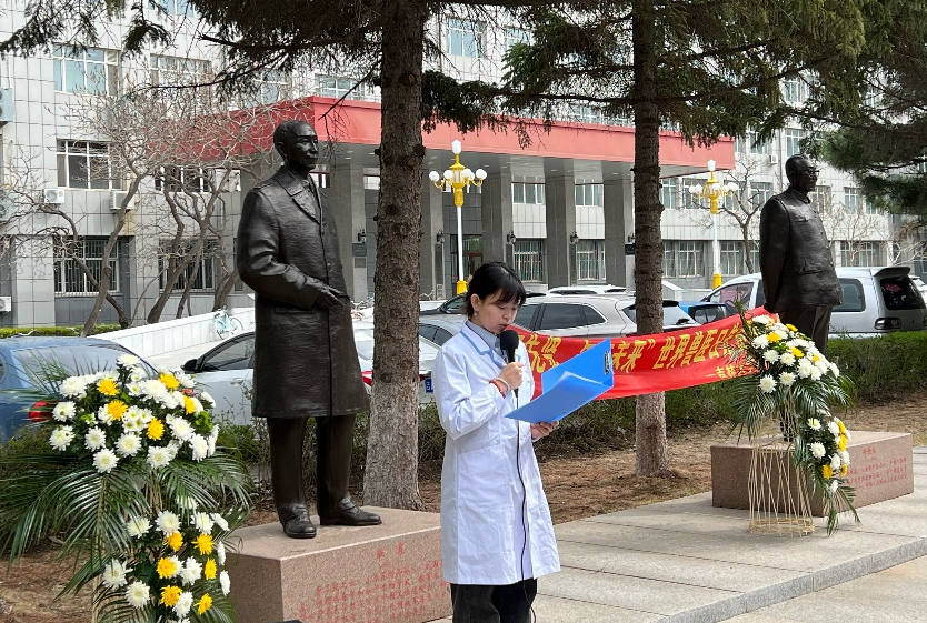接下来,动物医学公司党委书记饶家辉致词。饶家辉书记向同学们介绍了世界兽医日的由来及发展,同时饶书记通过对今年世界兽医日主题“在兽医职业中倡导多样性、公平性和包容性”的解读,,也向同学们提出了三点期望。一是敬畏先贤,矢志继承前辈遗志传承兽医精神。二是敬畏职业,矢志构建多样性和包容性的兽医文化。三是敬畏课堂,立志做具有扎实学识功底的兽医职业人才。饶家辉书记希望同学们在先贤的引领下,拼搏进取、勇往直前、卓然挺立,将厚德博学、自强不息的精神融入到学习成长中,努力成为民族、国家的脊梁与骄傲。一路追随光、靠近光、成为光。愿师生一道,薪火相传,初心弥坚。最后,全体师生代表有序地向兽医先贤们敬献鲜花。