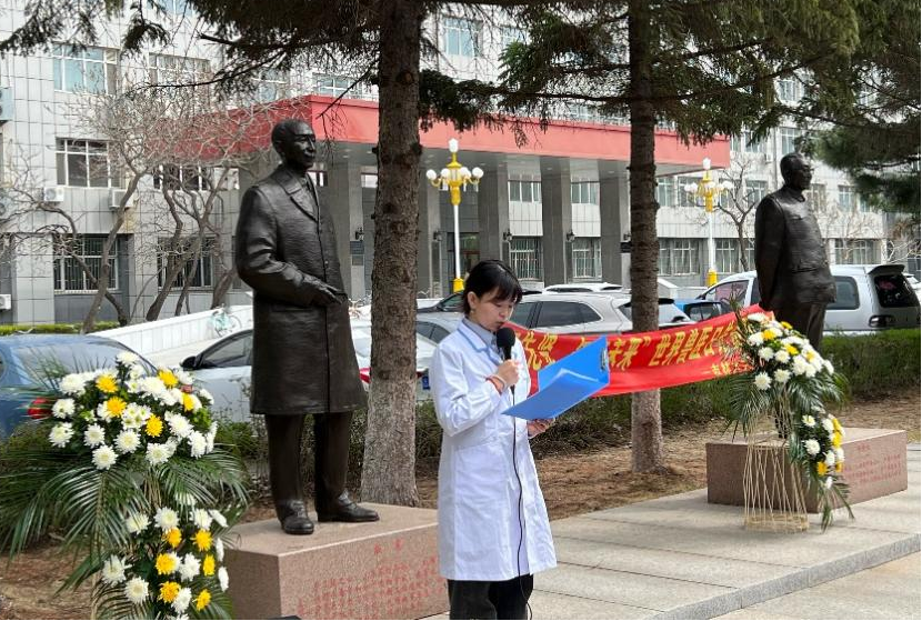活动第二项,硕士研究生鄂玉婷同学发言,鄂玉婷同学对兽医先贤的生平事迹进行介绍,表达了对于兽医先贤的敬重,再以自身实习经历,讲述榜样的精神力量,以及对于兽医事业坚定的热爱。兽医不仅维护着动物的健康,更是人类公共卫生安全的第一道防线,是为畜牧养殖行业保驾护航的守护者,是动物源性食品安全的主要责任人。