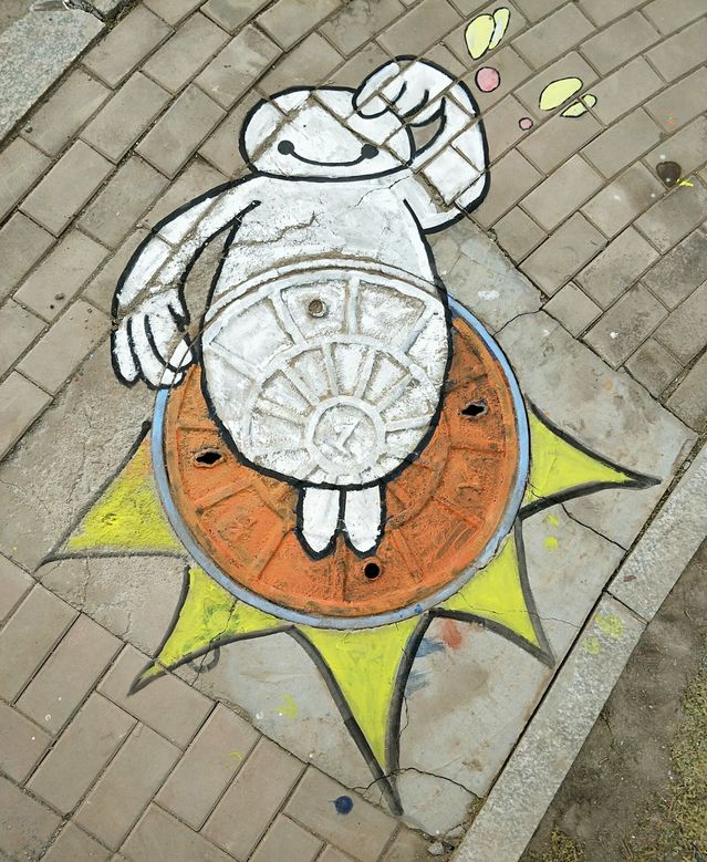 井盖涂鸦后,吸引了众多老师和员工的目光,引得大家纷纷驻足欣赏。本次活动更是吸引了媒体人的关注,得到了“看吉林”的宣传报道。绘制井盖的抖音小视频甚至吸引了超过4W的点赞量,足以证实活动圆满成功。