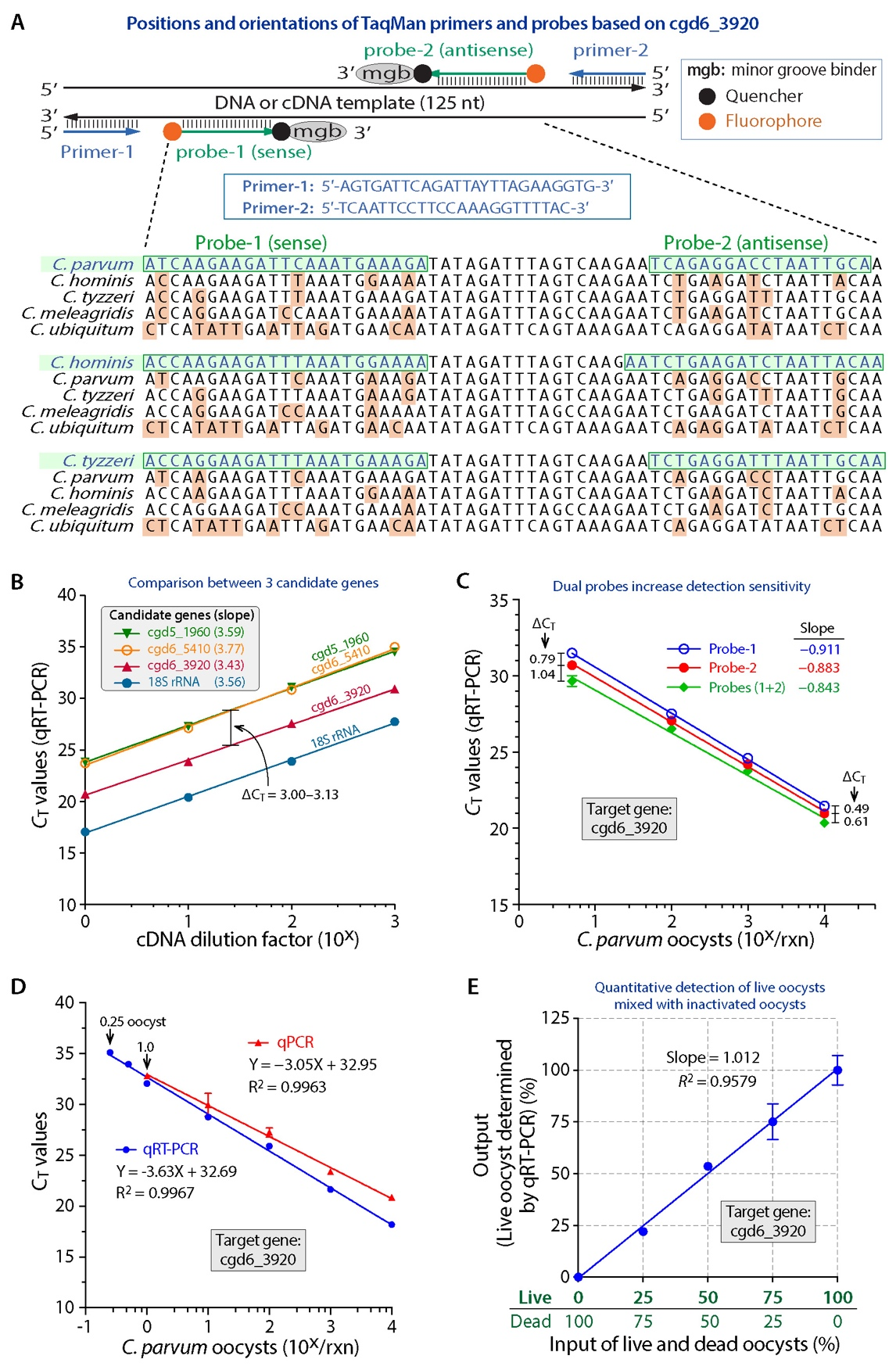 针对上述问题,该团队首先确定虫体RNA在卵囊失活后的数小时内降解(半衰期约4.5小时),可作为卵囊活性的合适指标;再从卵囊期高表达的基因中,筛选出可区分隐孢子虫物种的合适基因;并据此建立技术灵敏度高和特异性强的定量RT-PCR方法,用于定量及区分检测具有活性、对人类健康构成主要威胁的微小隐孢子虫和人隐孢子虫卵囊。