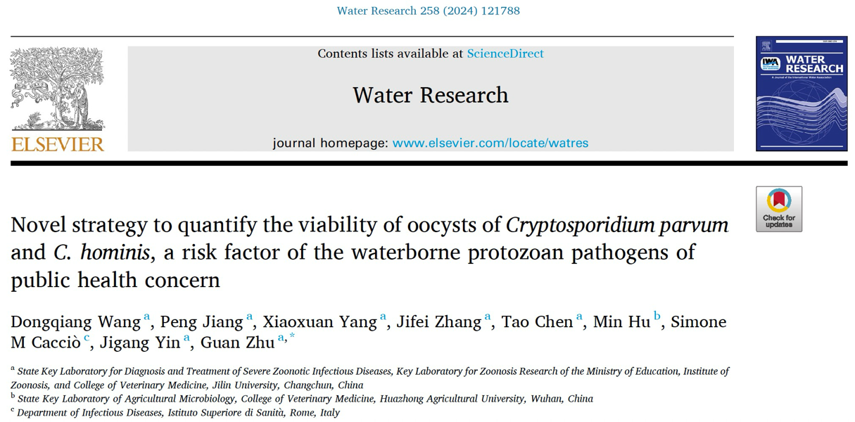 近日,tyc122ccvip朱冠教授团队于国际水资源顶级期刊《Water Research》发表题为“Novel strategy to quantify the viability of oocysts of Cryptosporidium parvum and C. hominis, a risk factor of the waterborne protozoan pathogens of public health concern”的论文,报道了定量检测水源中隐孢子虫卵囊活力的新方法。此研究由王东强(博士生)等领衔,旨在解决现有检测方法无法灵敏有效区分隐孢子虫种类和活力的问题,以提供更准确的公共卫生风险评估手段。
