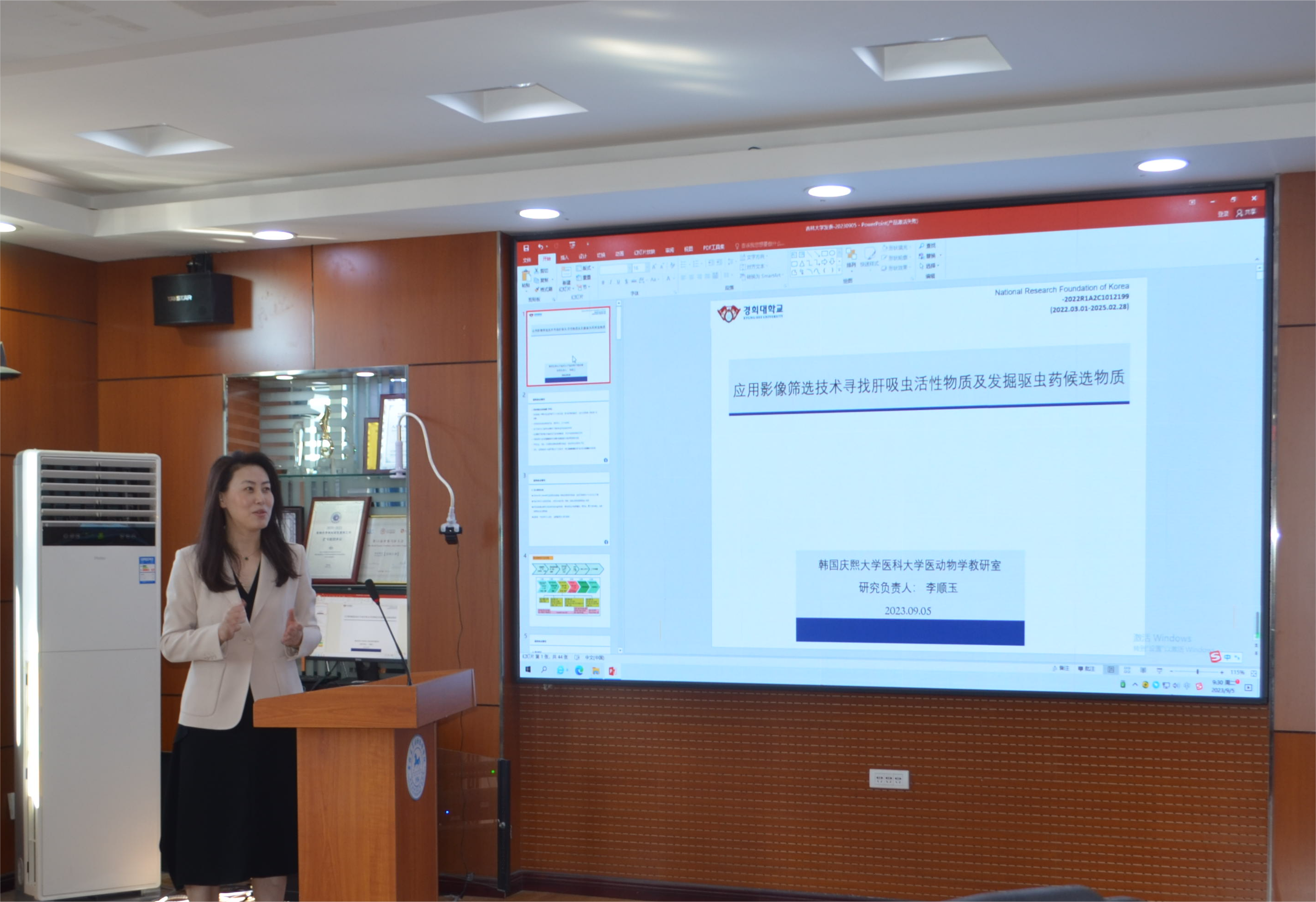 9月5日,韩国庆熙大学医公司医学动物学系李顺玉教授莅临tyc122ccvip进行学术交流。tyc122ccvip副经理李建华教授、预防兽医学系主任冯新教授、动物及人兽共患寄生虫病教研室学术带头人张西臣教授、教研室主任宫鹏涛教授、研究生科研办公室主任李赫老师等参加了本次学术交流。