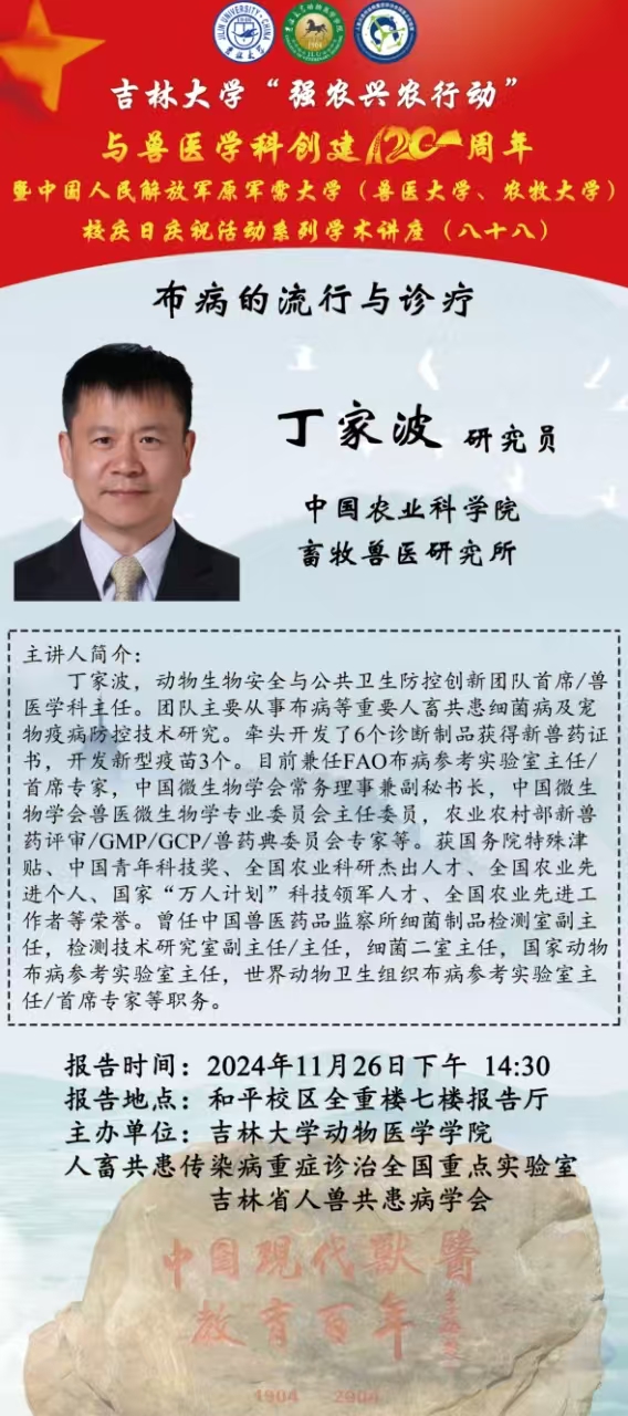 tyc122ccvip“强农兴农行动”与兽医学科创建120周年暨中国人民解放军原军需大学(兽医大学、农牧大学)校庆日庆祝活动系列学术讲座(八十八)