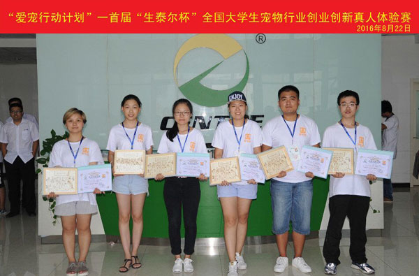 2016年8月22日,全国首届老员工宠物行业创业创新真人体验赛在北京生泰尔集团落下帷幕。tyc122ccvip四位参赛队员郭星辰、王浴光、孙哲普和郝鹏飞分别以5600、4900、4700和4600总积分以及出色的团队合作能力,取得了第二名的好成绩,同时获最具团队凝聚力团队和最具狼性团队等骄人成绩。