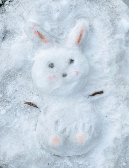 第三组作品则以萌趣制胜,一只憨态可掬的雪兔子静卧雪中。粉粉的耳朵与脚掌,恰似被冬日染上了温柔色彩,黑亮的眼睛透着纯真,仿佛随时都会从雪地里一跃而起,为寒冷的冬日带来满满的生机与活力 。