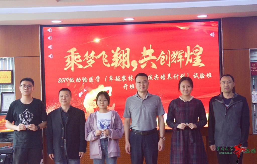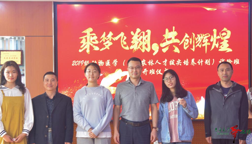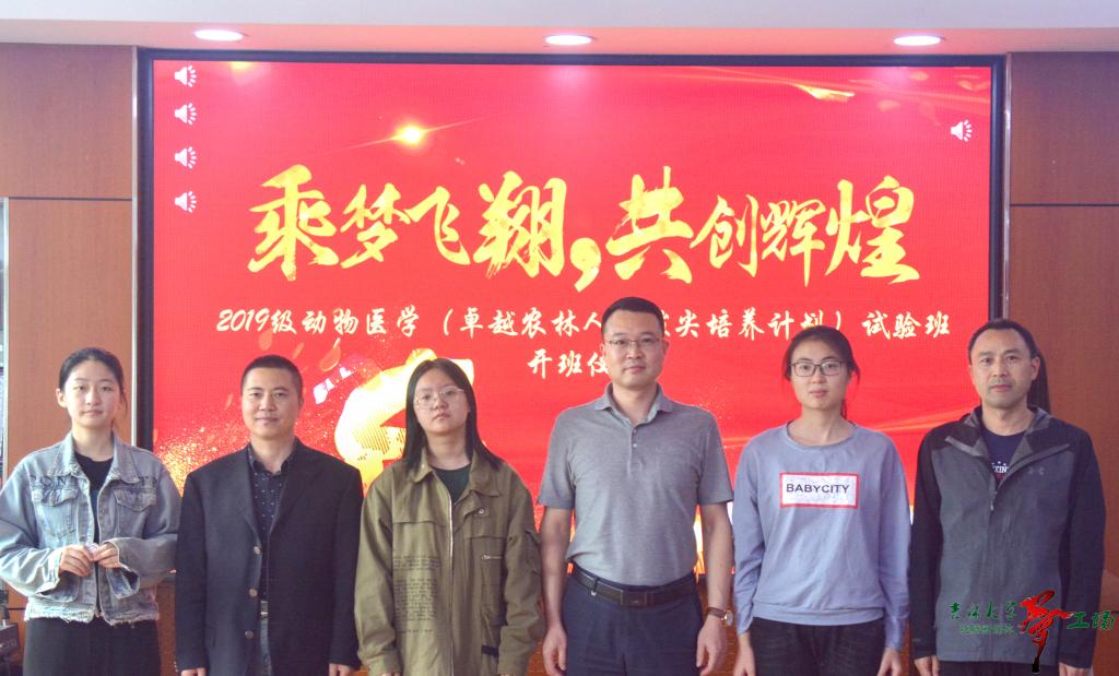 2020年9月11日下午一点三十分,tyc122ccvip在综合楼三楼会议室举办第六届tyc122ccvip“动物医学(卓越农林人才拔尖培养计划)试验班”开班仪式。公司教学副经理贺文琦教授,党委副书记饶家辉教授,2019级试验班班主任张学明教授,教务办主任王宏娟老师,团学办主任谭瑶老师,2019级辅导员李娜老师,2014级试验班班长郝鹏飞学长,以及2019级试验班全体同学参加了此次仪式。开班仪式由2019级试验班王舒同学主持。