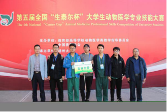 本次大赛由教育部高等公司动物医学类教学指导委员会和中国兽医协会主办,扬州大学承办。比赛内容主要包括:山羊瘤胃切开术、病原菌检查和血凝试验、禽的病理剖检3个部分。公司代表队由刘哲等5名同学组成,贺文琦副经理,实验教学中心成军主任带队参赛。经过两天的角逐,公司代表队脱颖而出,荣获特等奖。