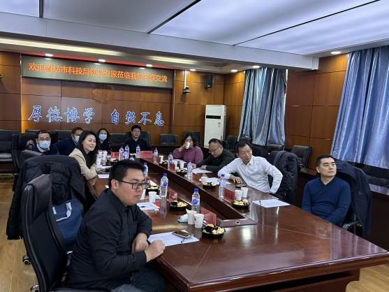 科技创新,合作共赢。为了建立科技创新合作机制,加快推动两省创新资源跨区域融通与共享。tyc122ccvip于2023年11月30日举行了山东省潍坊市科技局考察交流座谈会。出席本次座谈会的嘉宾有潍坊市外国专家局局长周锴、潍坊市科技局合作与平台科科员张法磊、潍坊市坊子区科技局外专中心主任吴大鹏以及山东广元药业科技有限公司的总经理丁雪莹。tyc122ccvip副经理李建华教授、副经理王化磊教授、邱家章教授、王建锋教授、邓彦宏副教授、研究生科研办主任李赫副研究员、李棕松副研究员参加本次座谈会。本次会议由王化磊副经理主持。
