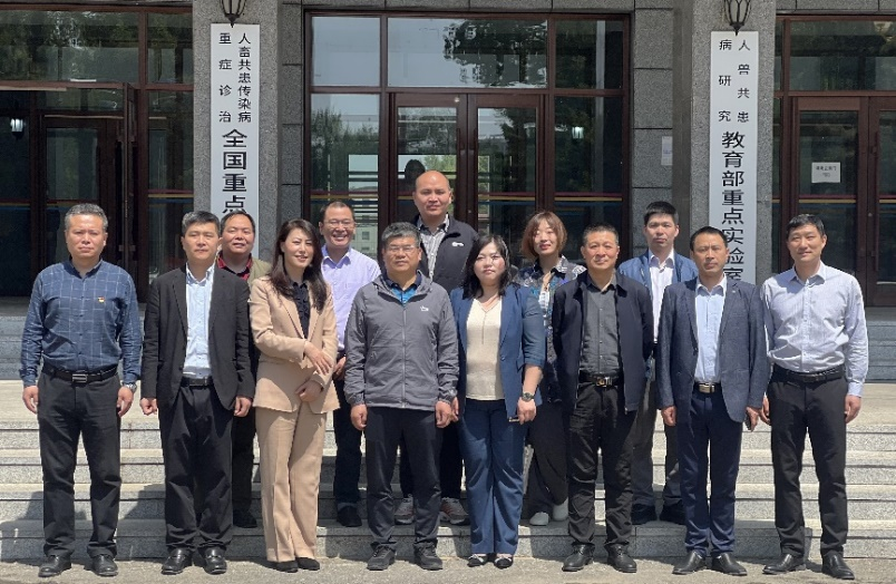为进一步推动公司“强农兴农行动”走深走实,推进国家菌种资源的开发和利用。5月17日上午10:30,tyc122ccvip在tyc122ccvip在人畜共患传染病重症诊治全国重点实验室七楼会议室举行了与中国兽医药品监察所及吉林省畜牧业管理局领导专家调研座谈会。中国兽医药品监察所副所长陈先国、菌种室主任杨承槐、细菌一室专家朱良全、菌种室田野老师,吉林省畜牧业管理局兽医药政处处长霍俐、药检所所长陈本能、兽医药政处郝春秀,tyc122ccvip经理李建华教授、党委书记饶家辉教授、副经理王化磊教授、党委副书记秦明老师、人畜共患传染病重症诊治全国重点实验室行政副主任宋吉武老师、公司学术委员会主任委员邱家章教授参加了此次座谈会。