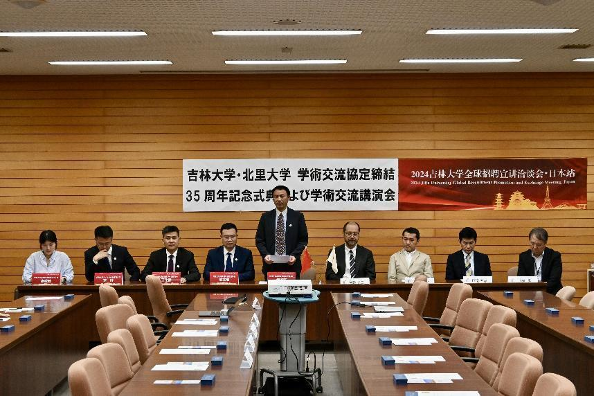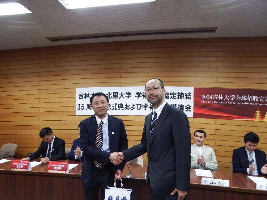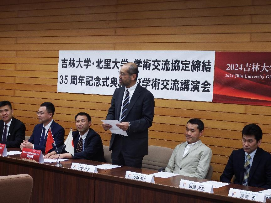 庆祝仪式在北里大学V1号馆大会议室拉开帷幕。北里大学兽医学部学部长冈野昇三和动物医学公司党委书记饶家辉分别进行了热情洋溢的致辞,对两校兽医学科三十五年来取得的成就给予了高度评价,并对未来的发展提出了殷切期望。饶家辉书记回顾了两校交流三十五年的发展历程。自1989年4月17日,长春兽医大学与日本北里大学签署《关于加强学术交流的备忘录》及其实施细则,两校就开展密切交流合作。互派师生进修访学,互聘兼职教授,进一步促进了中日文化和学术交往,加深了两校师生的沟通、了解和交流。冈野昇三学部长对tyc122ccvip兽医学科创建120周年表示祝贺,并愿以此为契机,加强深度合作,就联合办学,共同培养本科生、硕士生提出了可行的意见和建议,并期待9月份回访tyc122ccvip。