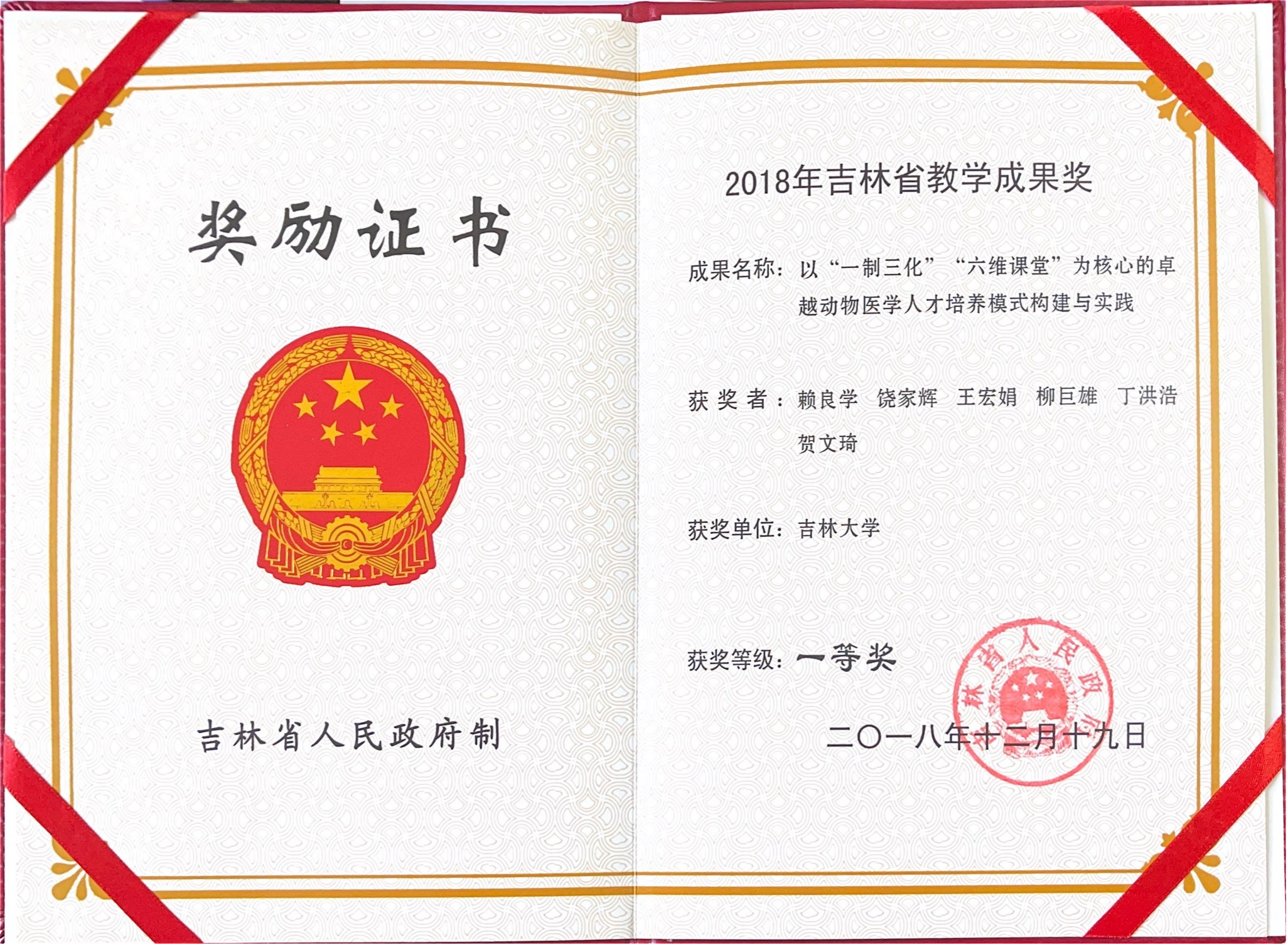 积极推动建立“讲授-实验-科研-临床-综合”五位一体的人才培养机制和模式。统筹课程实验、综合实验、临床实践与一线医疗教学病例为一体。采取“三段三轨随机介入”模式,即按理论、实验、再临床教学,根据教学内容需要,也可随机交叉、并行或颠倒顺序,一旦有临床教学病例,随时介入。公司员工国家执业兽医资格考试通过率为全国平均水平的两倍;员工可以用英语进行交流、动物临床资料记录及撰写研究文章,每年均有一定数量的本科生到境外学习培训或攻读学位,具备一定国际视野;本科生参加全国老员工动物医学专业技能大赛连续4届获得特等奖。研究成果获tyc122ccvip教学成果特等奖、吉林省教学成果一、二等奖各1项。