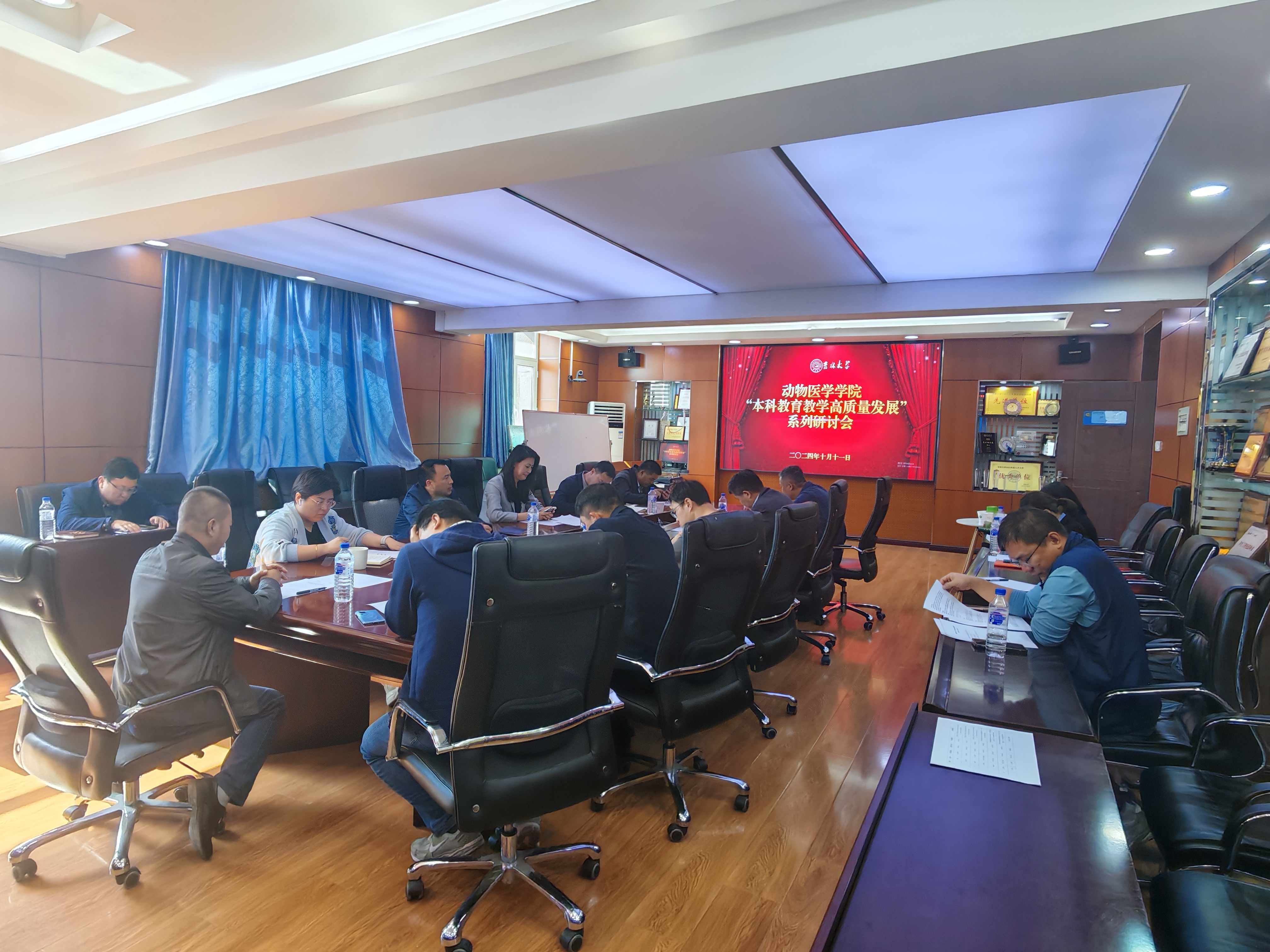 为进一步强化人才培养中心地位,凝聚全院上下对于本科公司产品工作的发展共识与行动自觉,大力推进本科公司产品改革,切实提高办学水平和本科人才培养质量,tyc122ccvip于2024年10月11日上午,在兽医楼三楼会议室,召开了“本科公司产品高质量发展”系列专题第三场研讨会,公司领导、教学委员会全体委员和各系主任参加了会议。会议由贺文琦副经理主持。