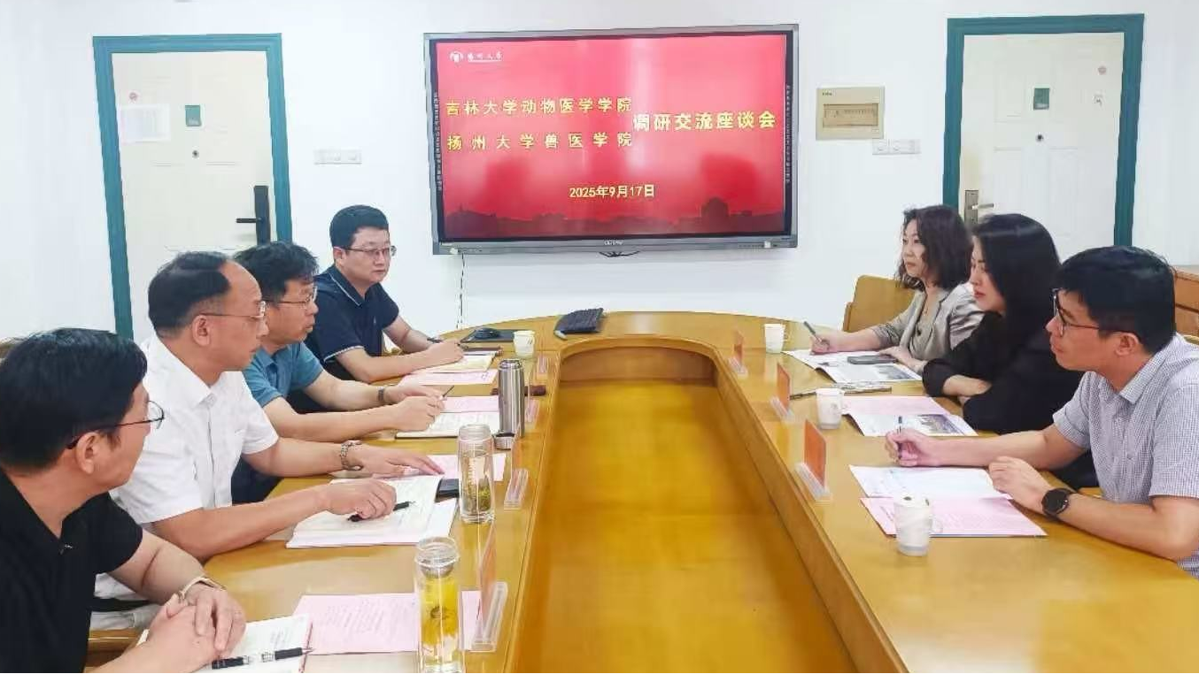 第二站:调研组前往扬州大学兽医院与党委书记王庆林、经理王志强等领导进行座谈交流。会议重点讨论了兽医院的临床教学体系、病例库建设以及与地方企业的合作模式。扬州大学通过建立“临床教学+企业实习”双轨制,提升了员工的实践能力,并在区域动物疫病防控中发挥了重要作用。调研组对其在校企深度融合、实现教学与服务双赢的创新模式给予了充分肯定。