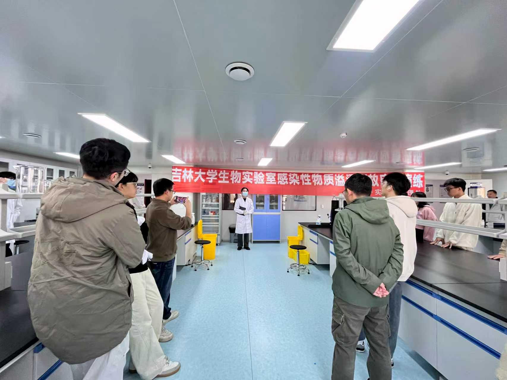 本次演练采用了“模拟情景+实操演练”的方式。企业人员与事先培训好的8名研究生,先后进行了致病性病原体意外泄漏场景模拟,以及事故发生后的应急疏散、现场临时隔离、事故报告、应急处置、应急救助、现场恢复流程进行实操演练。整个应急处置流程响应快速,科学规范,参加演练的同学沉浸式体验了整个操作流程,旁观学习的同学通过认真观察,也详细了解和学习了整个操作流程。